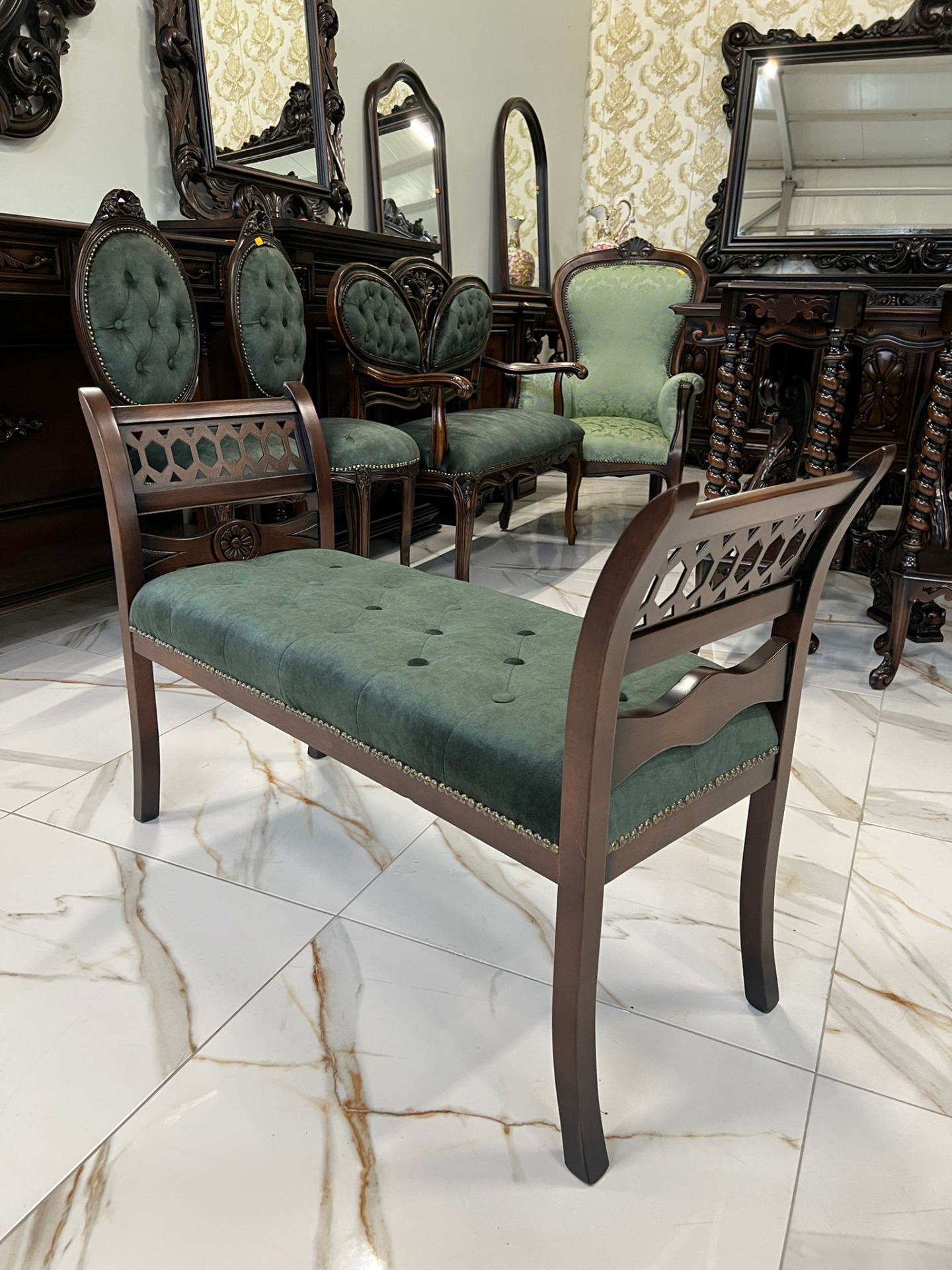 Bancuta din lemn masiv, tapițeria velvet luxury culoare verde închis!