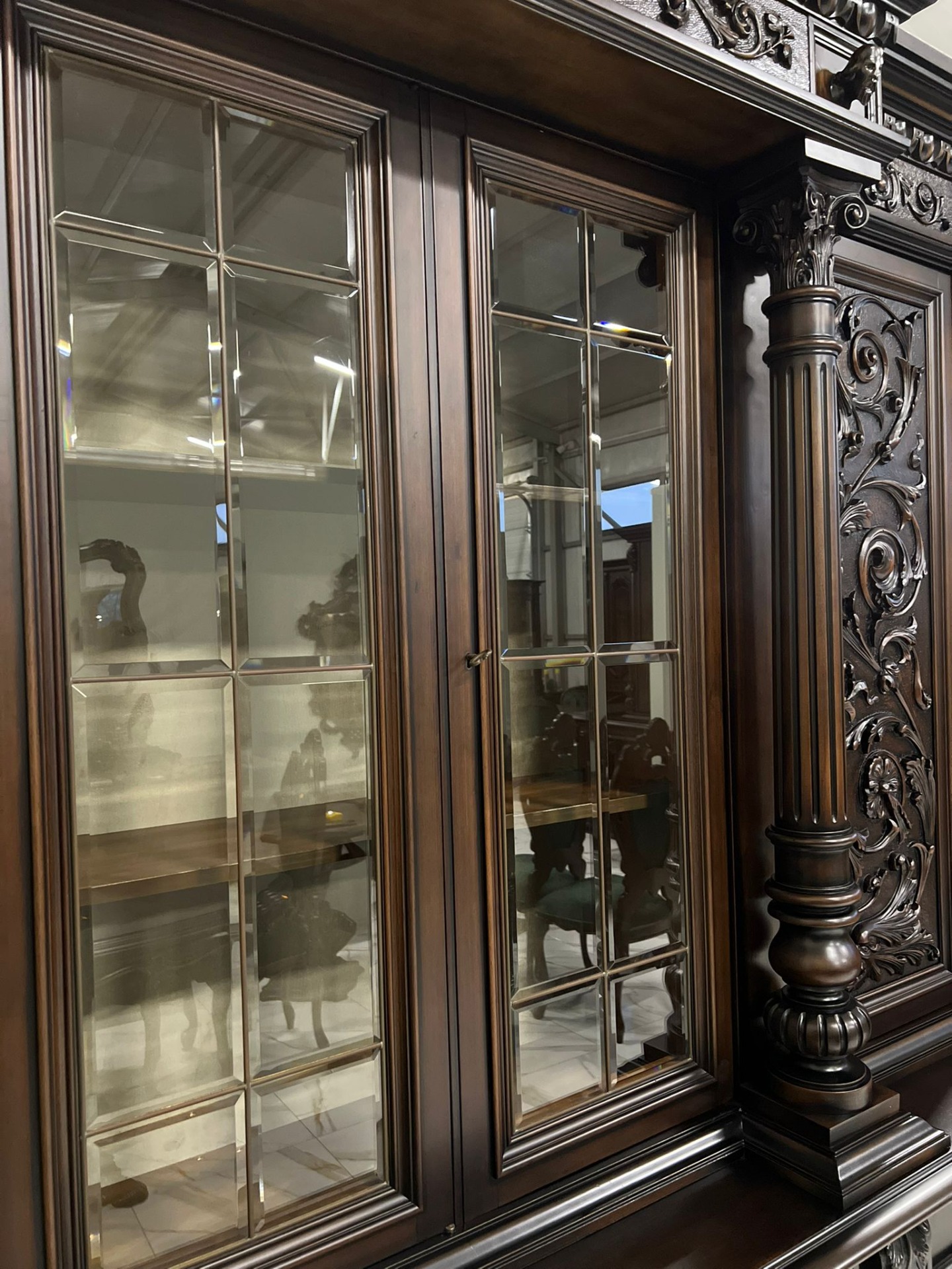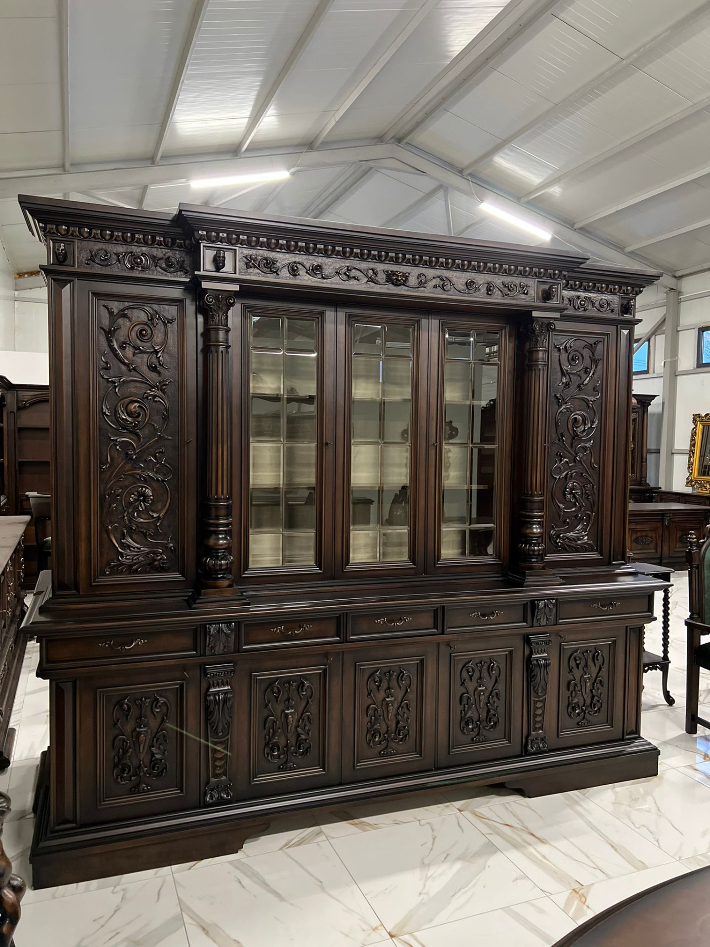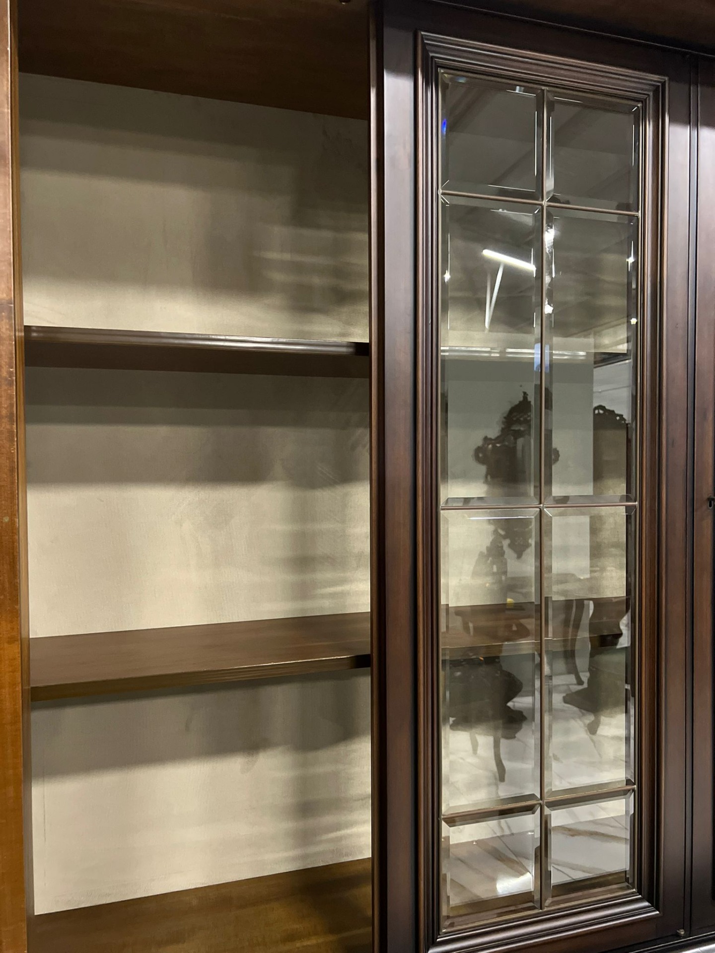 Biblioteca superbă, impunătoare din lemn masiv complet restaurata sticla cristal!