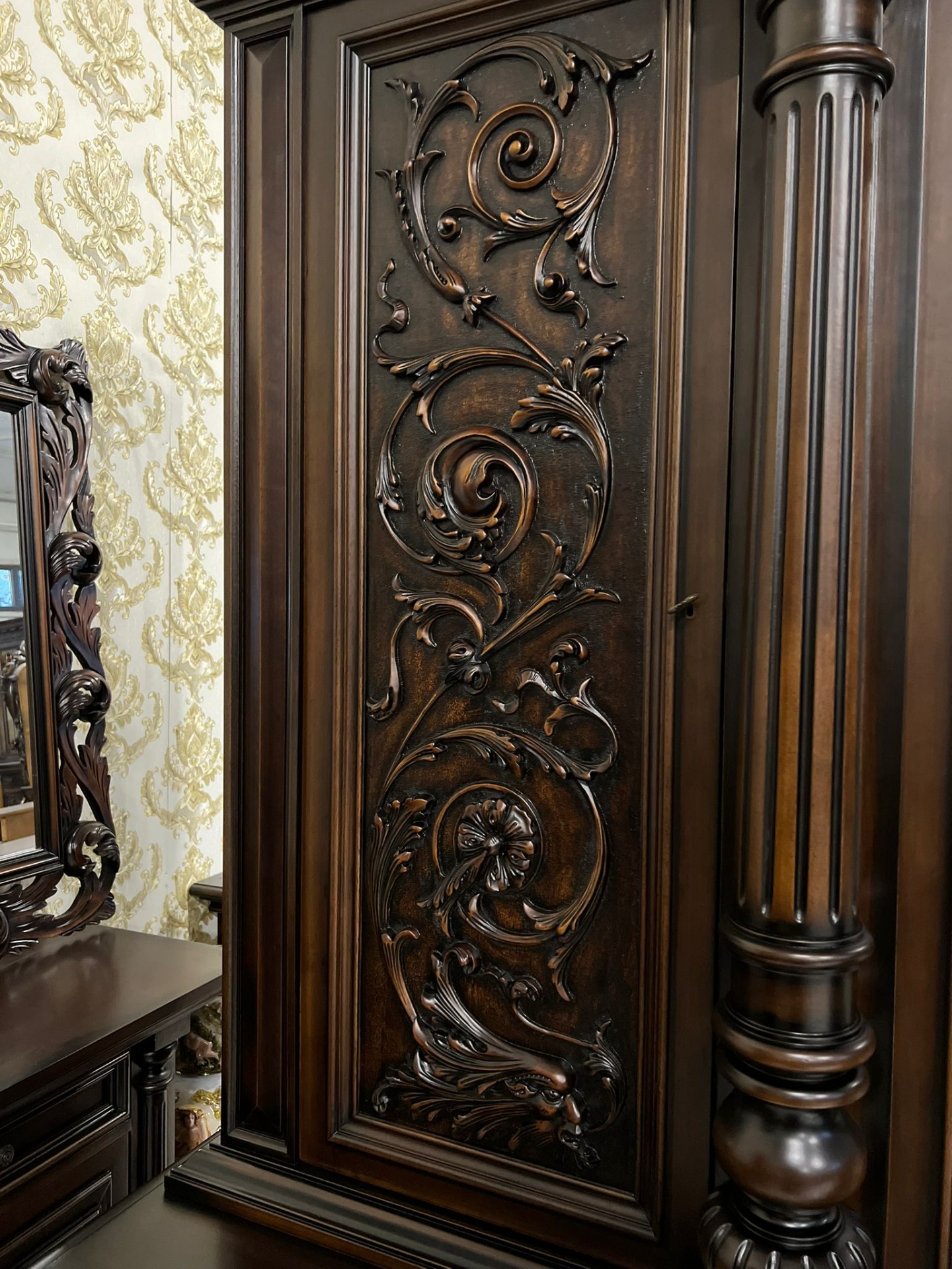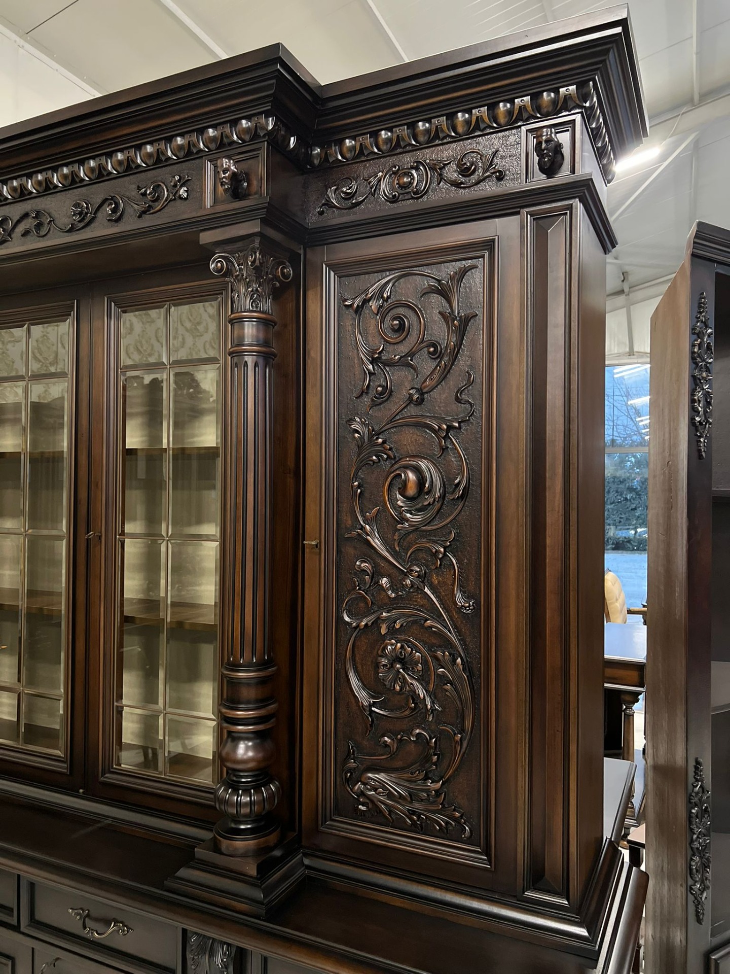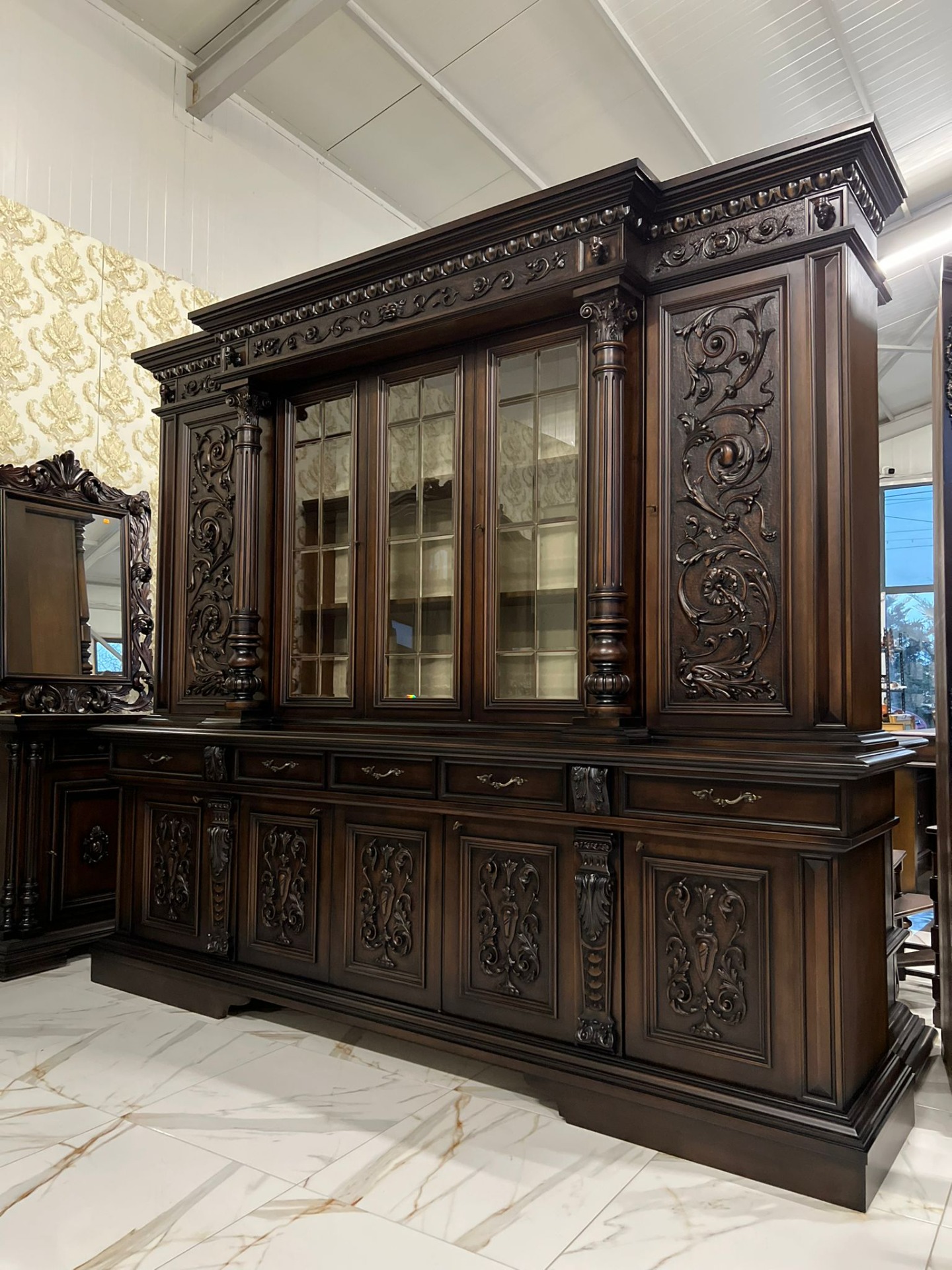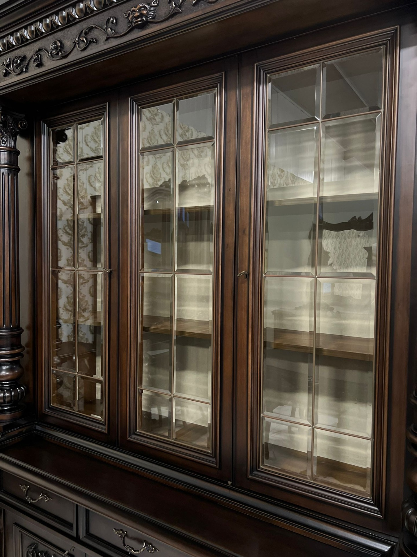 Biblioteca superbă, impunătoare din lemn masiv complet restaurata sticla cristal!