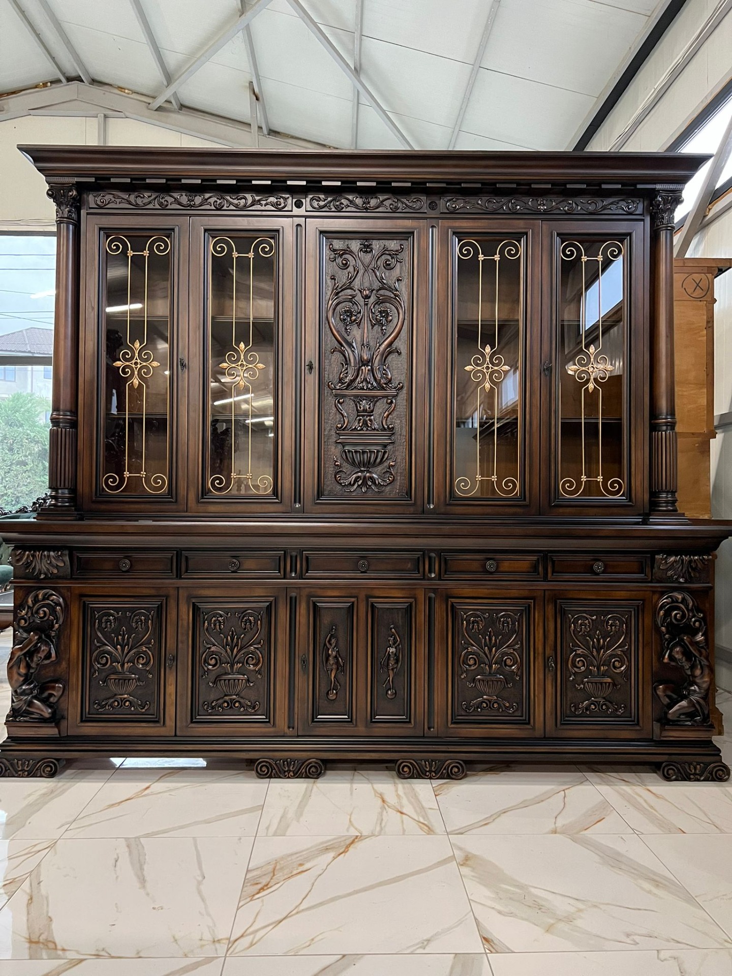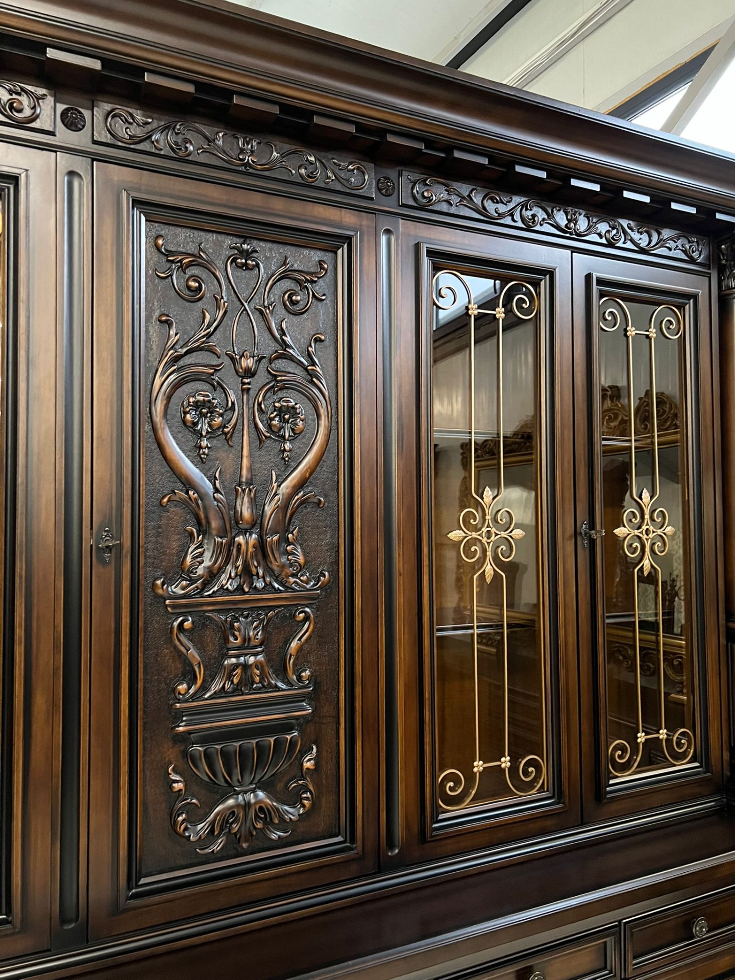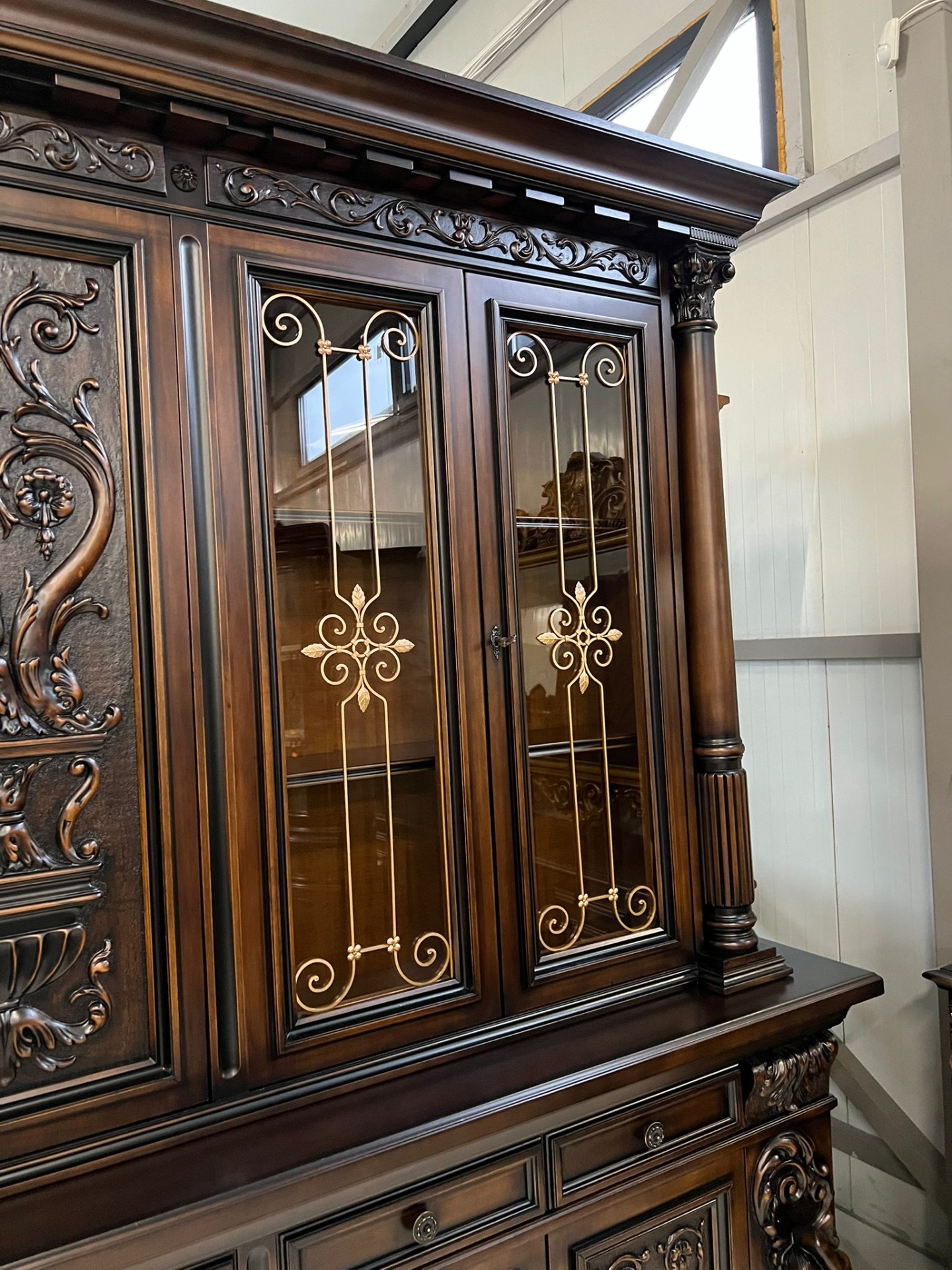 ➡️Biblioteca cu elemente din bronz pe geamuri (detașabile) cu 283 cm lungime, 52 cm adâncime, 241 cm înălțime preț 26500 lei