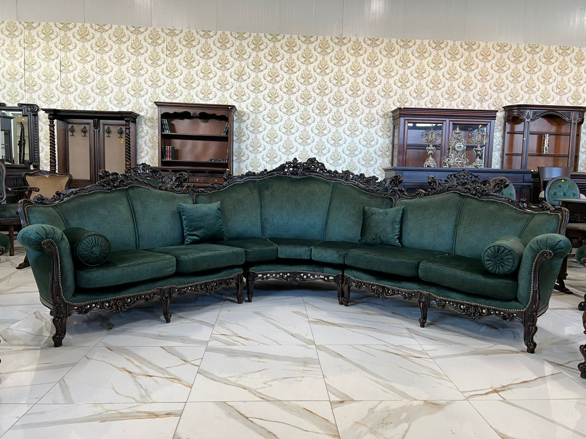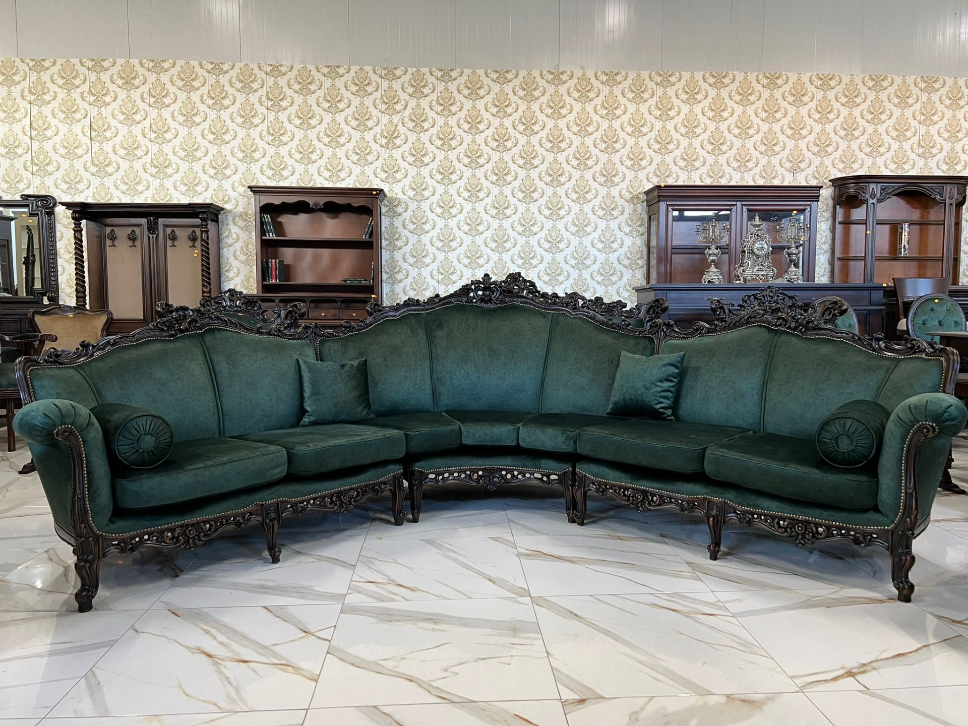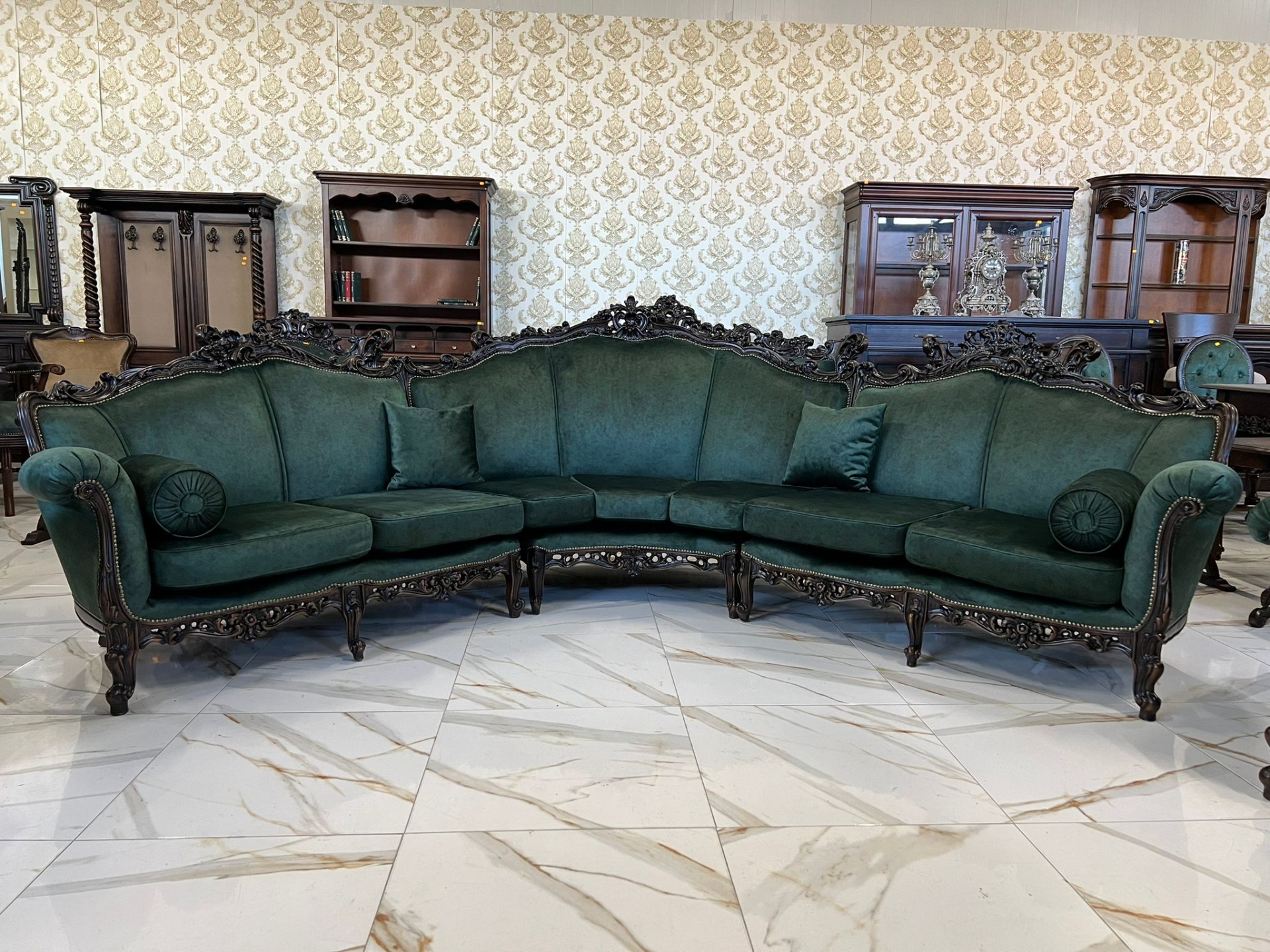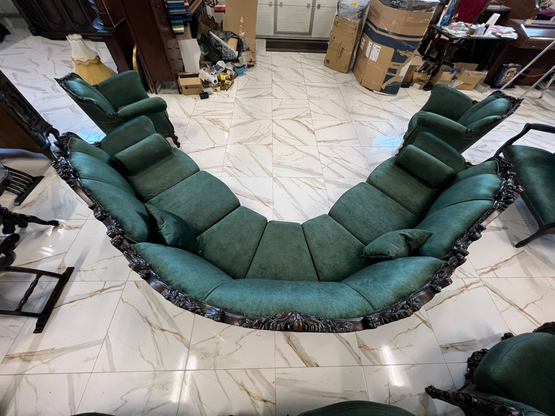 Minunat si unicat la noi acest set Baroc compus din canapeaua pe rotund de dimensiuni mari plus 2 fotolii complet restaurate in stare impecabilă!