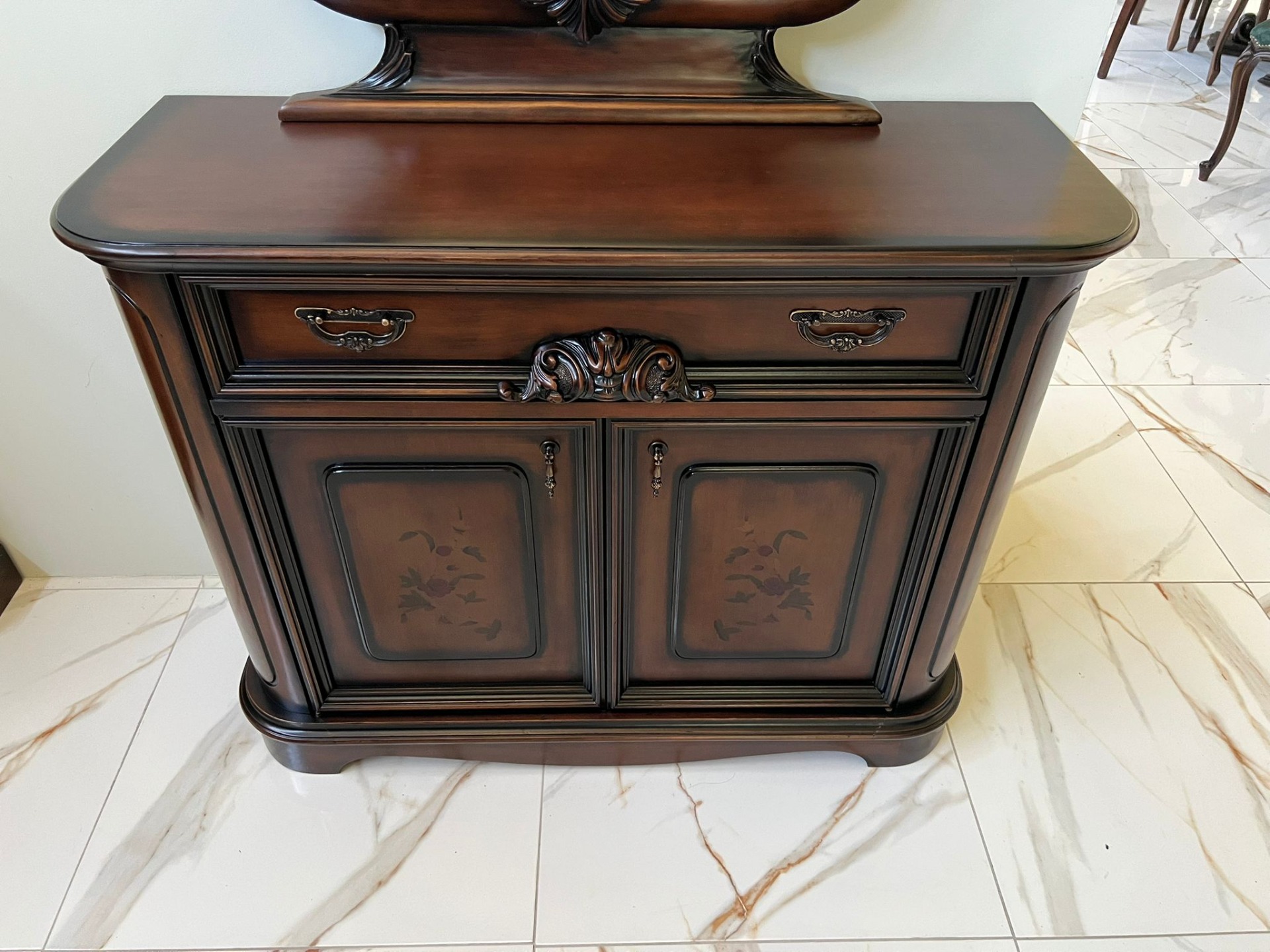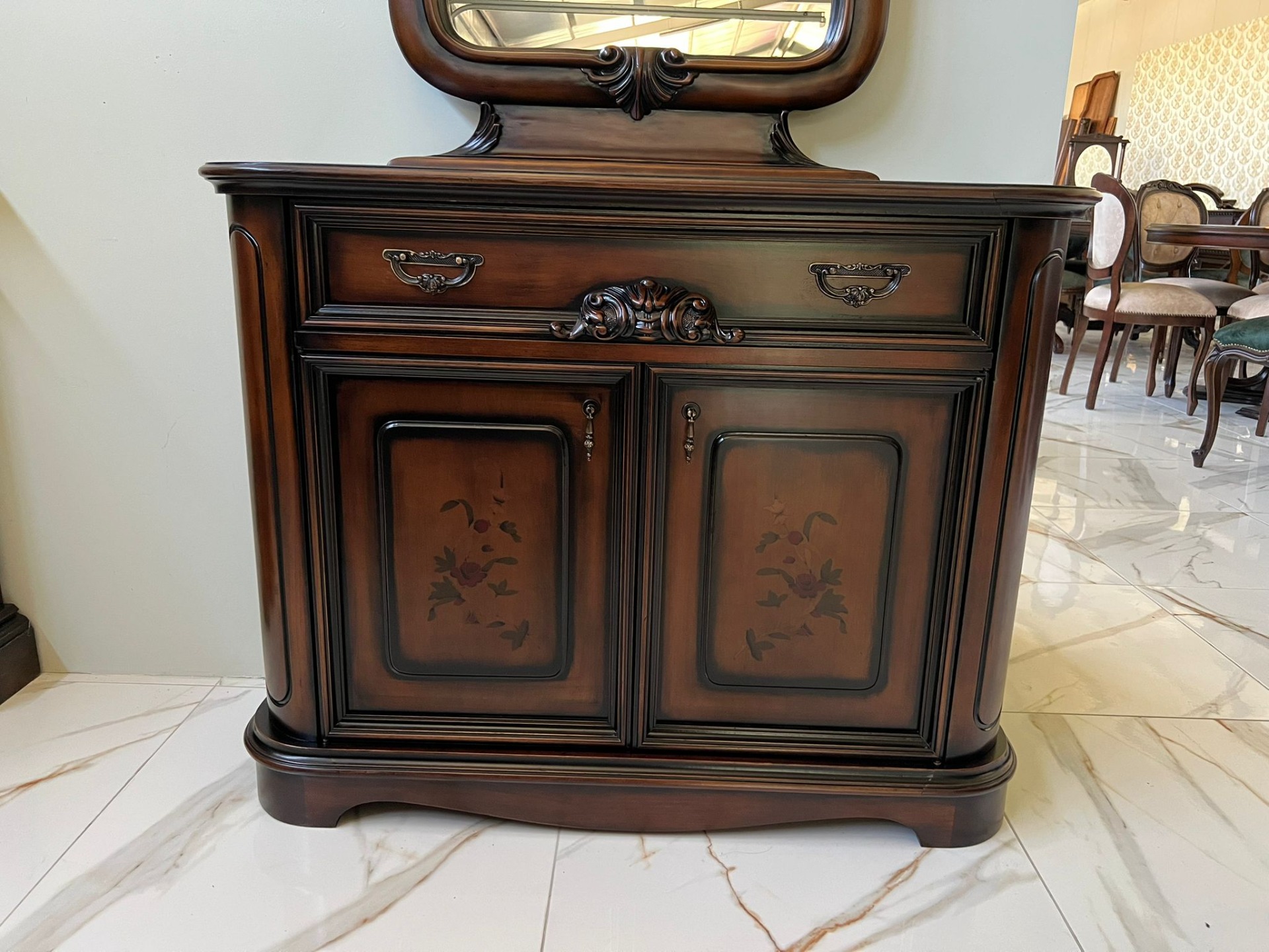 Comoda hol intrare cu oglinda și intarsie florala complet restaurat in stare impecabila!
