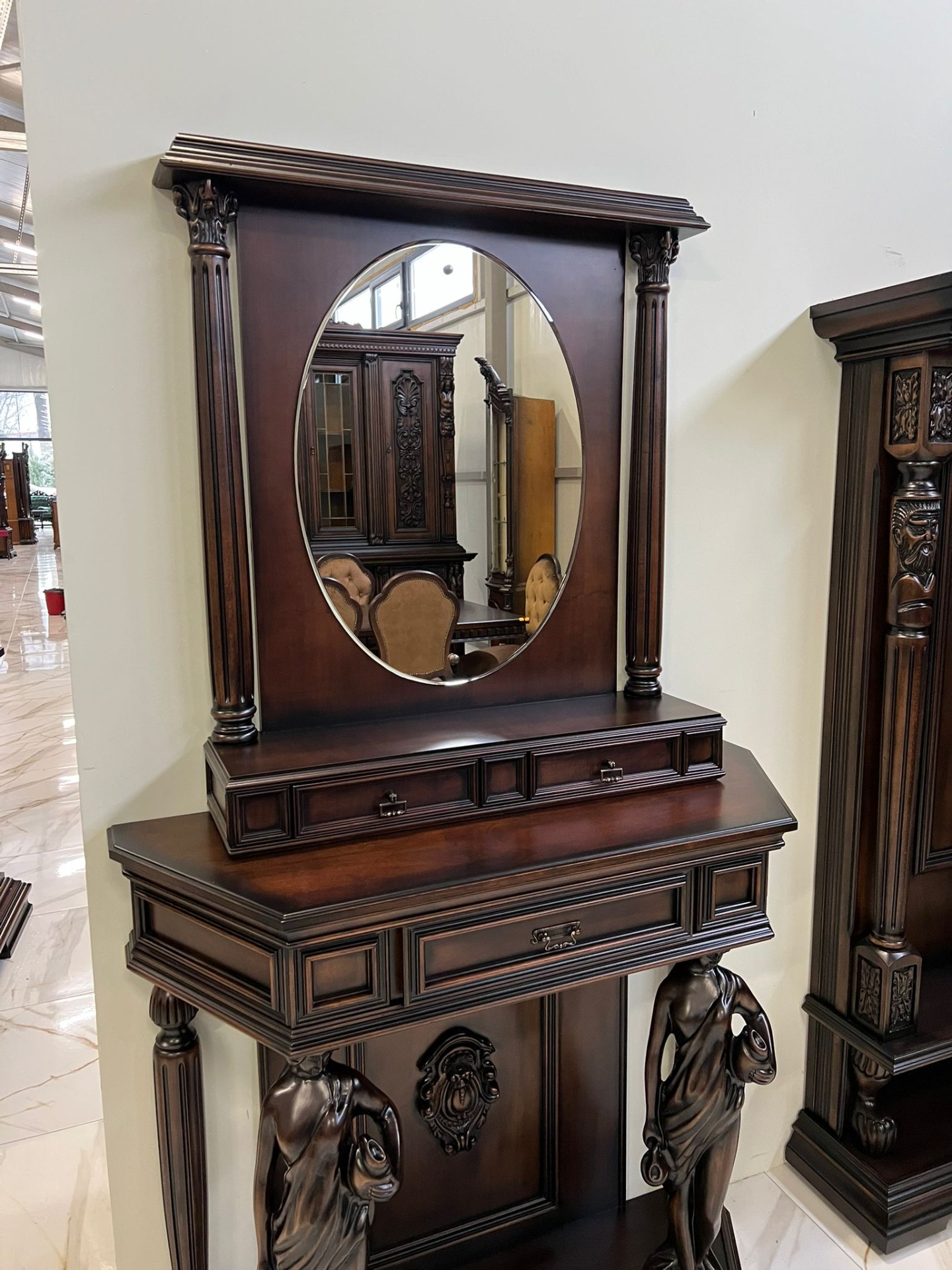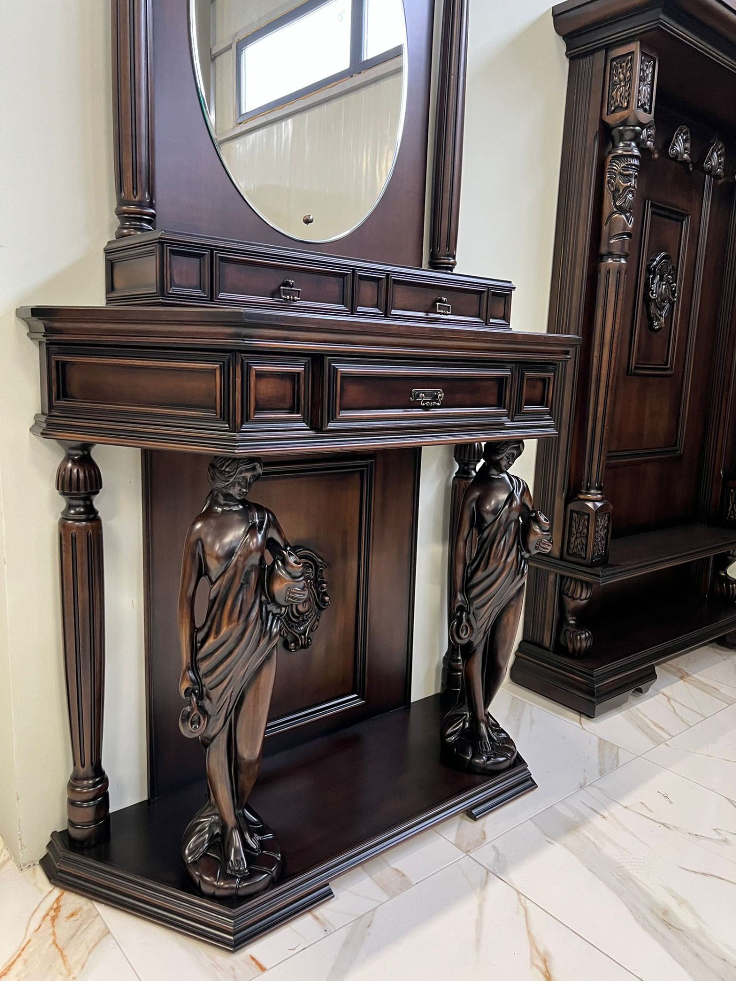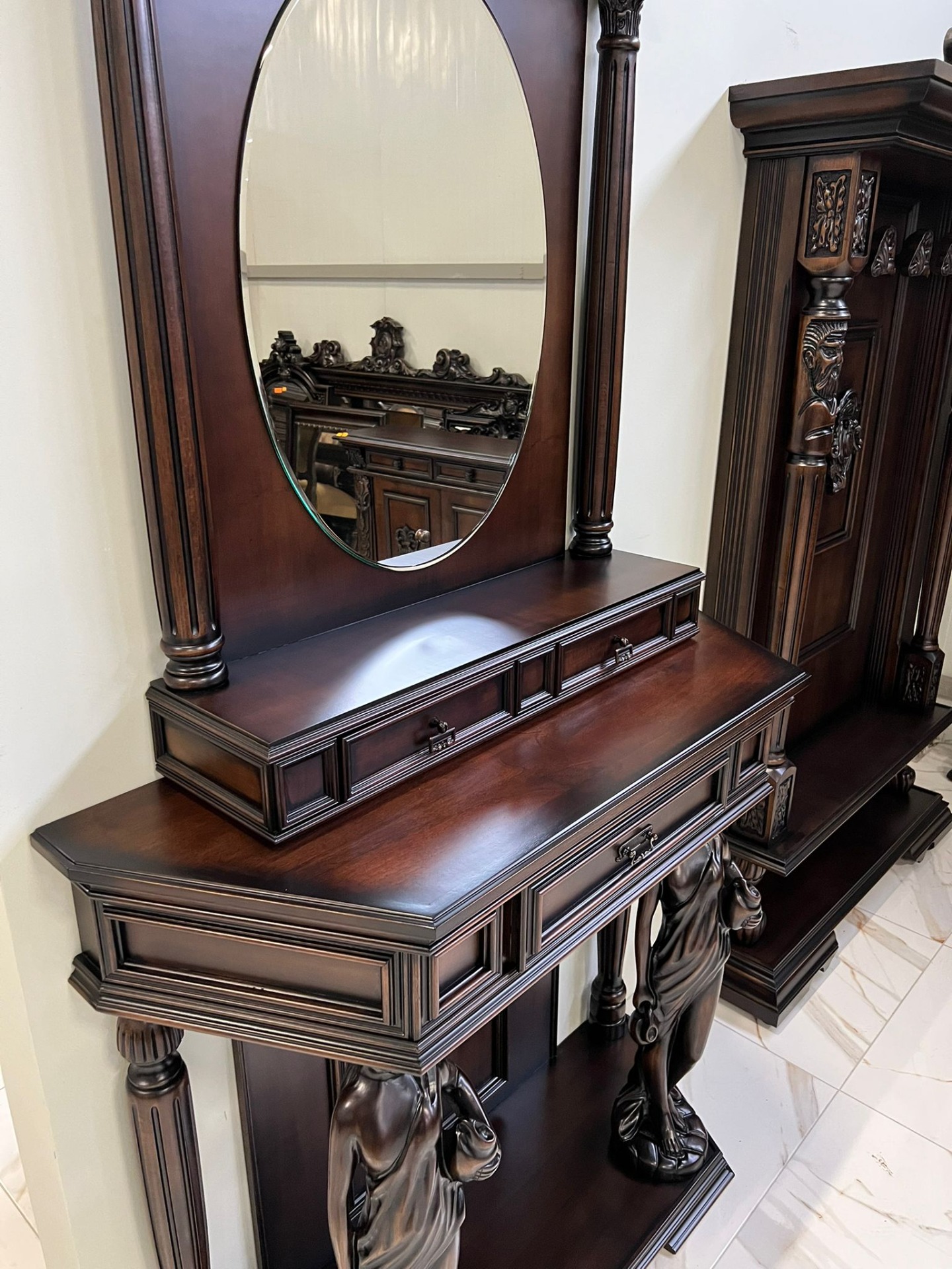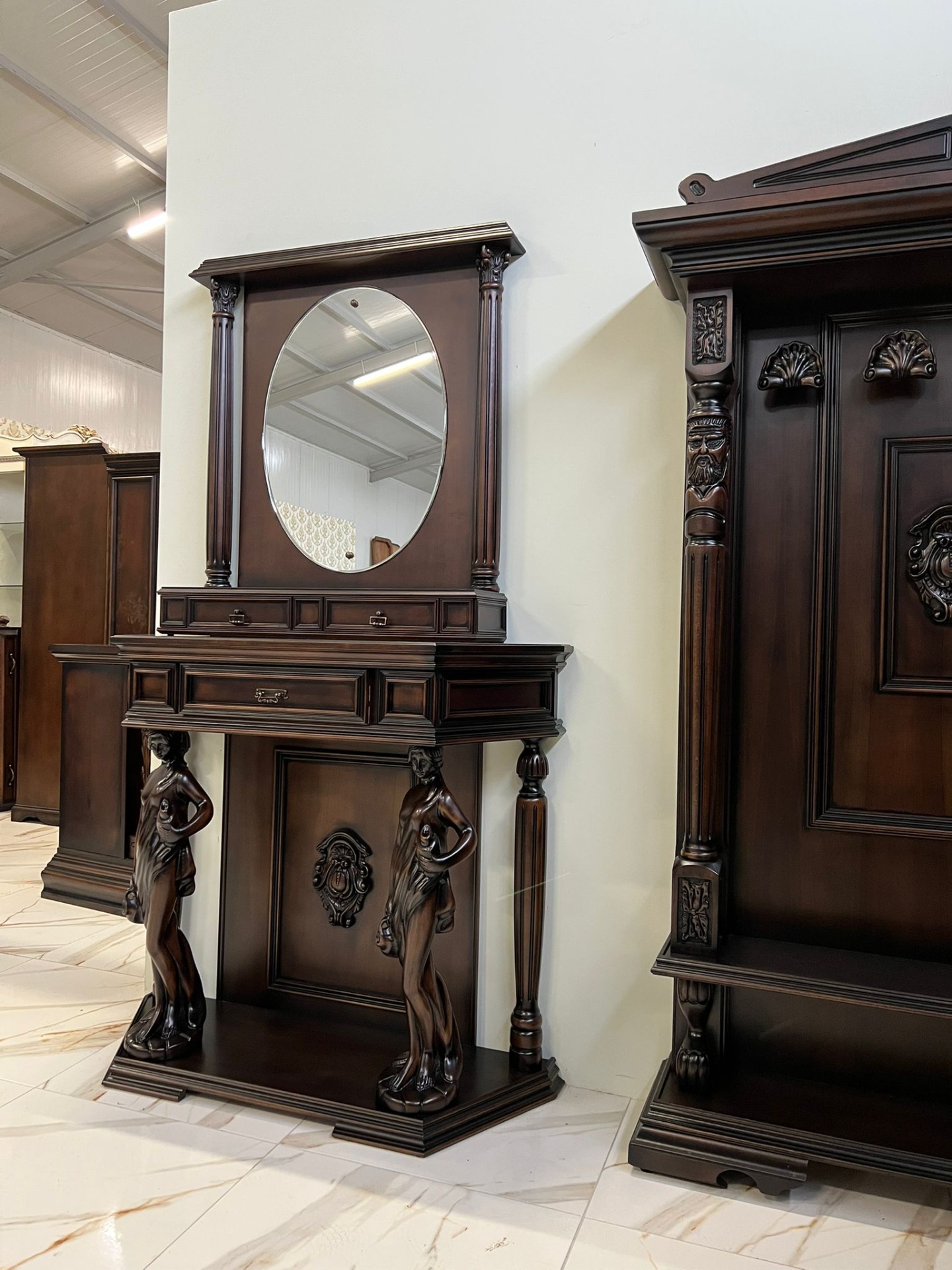 Minunată aceasta consola cu oglinda ideal si ca masa de toaletă complet restaurata din lemn masiv!❤️