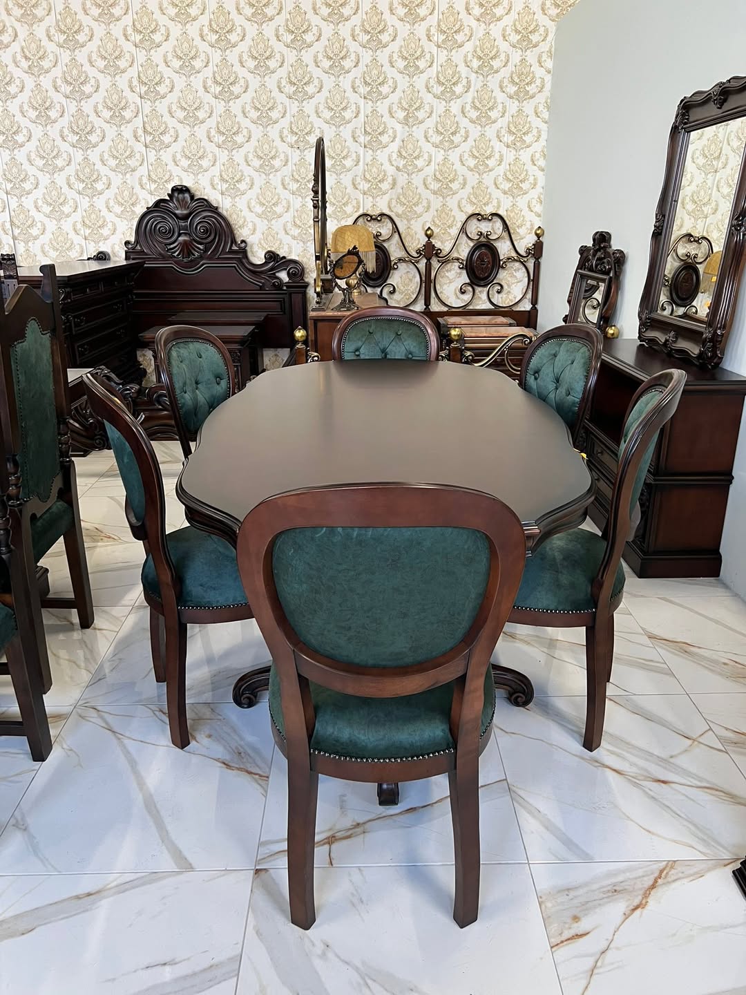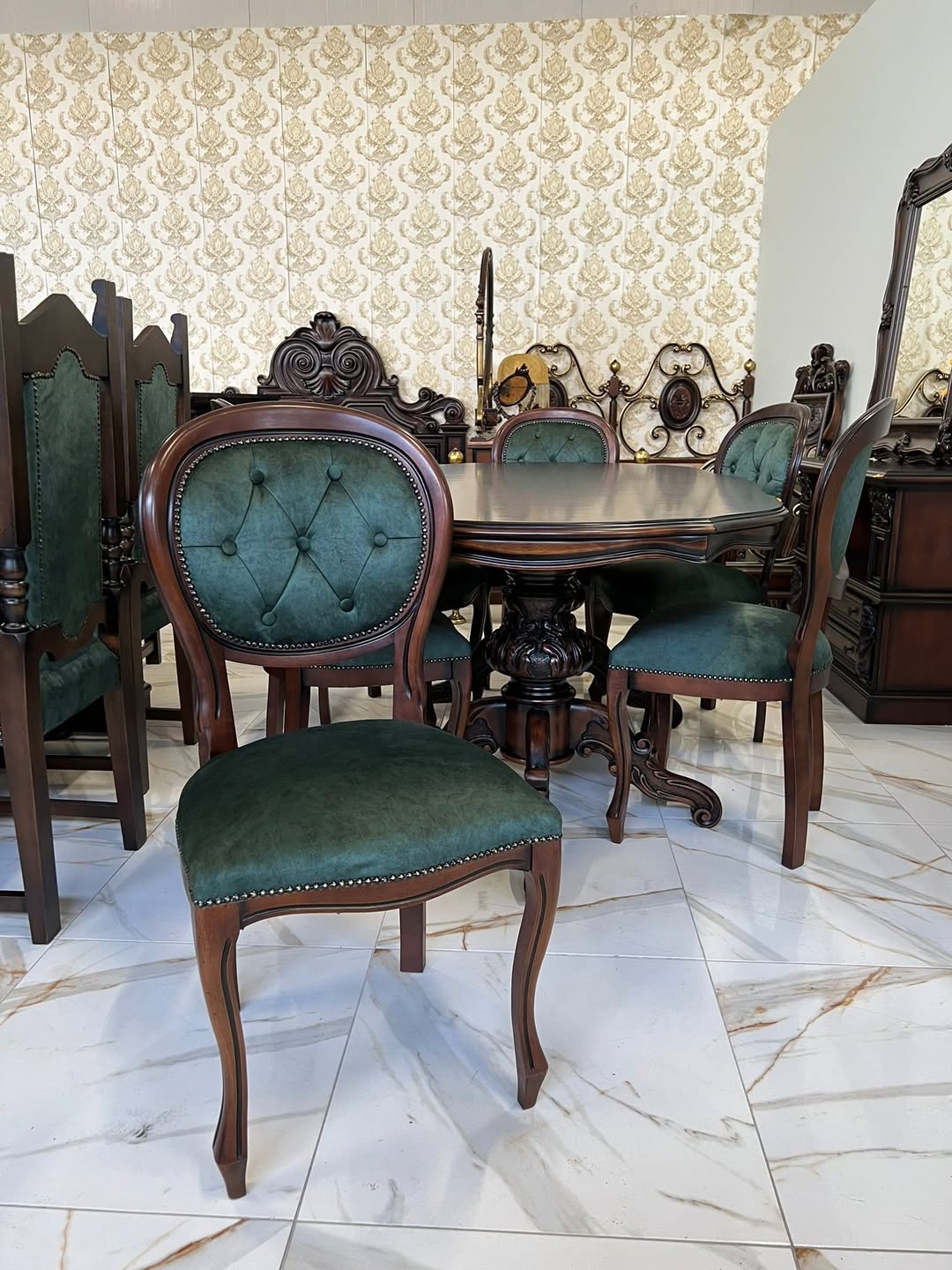 Masa ovală stil Baroc și set 6 scaune din lemn masiv complet restaurate în stare excelentă!