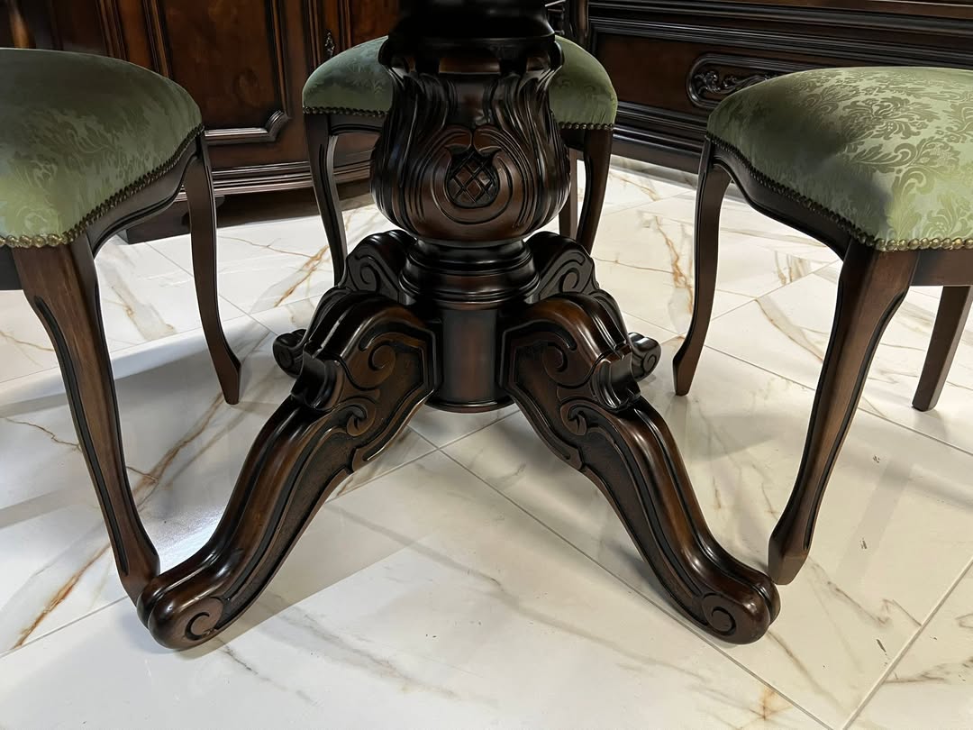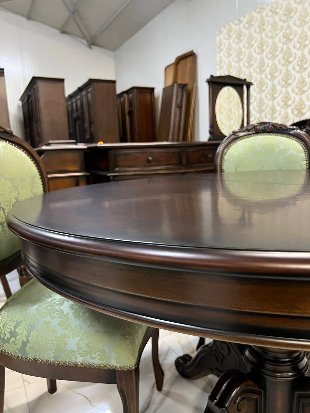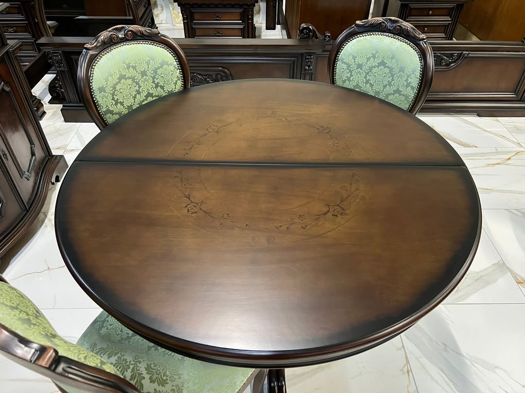 Masa rotunda extensibila cu intarsie florala complet restaurat si set 4 scaune!