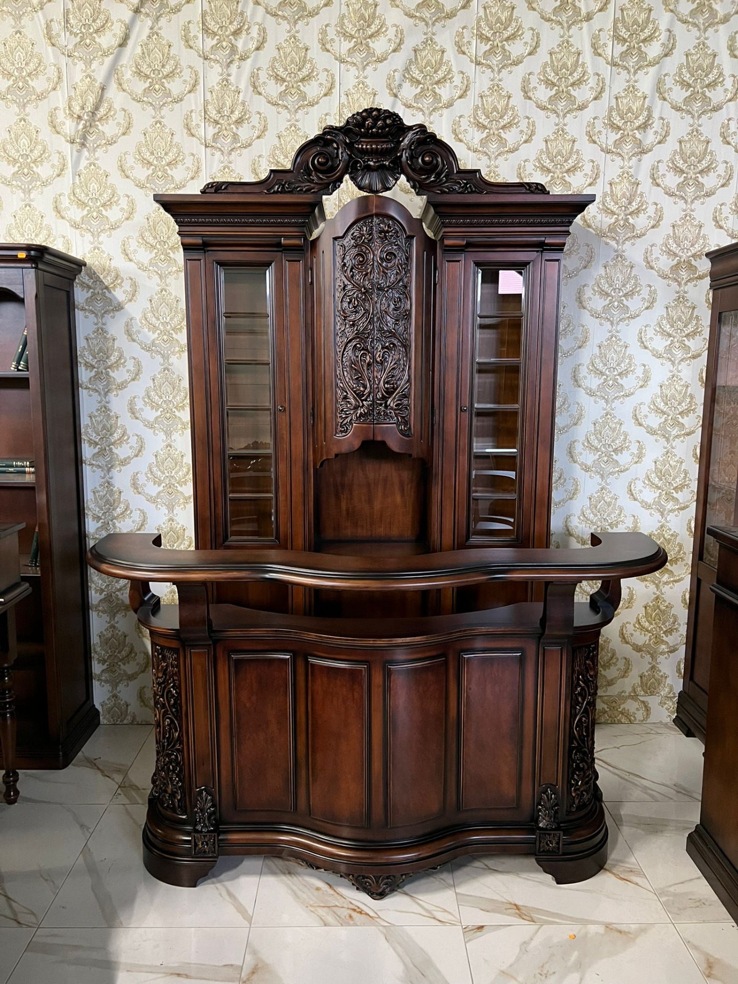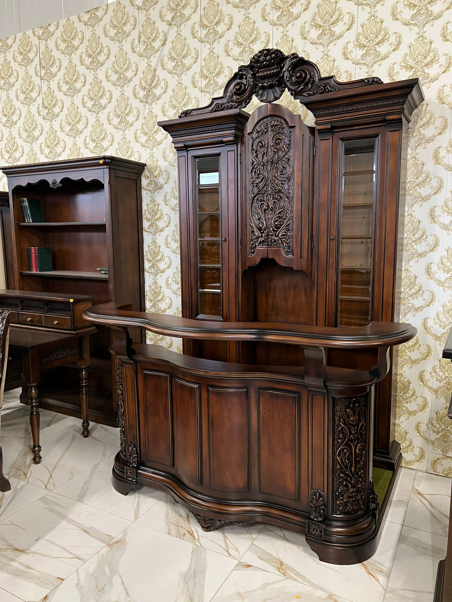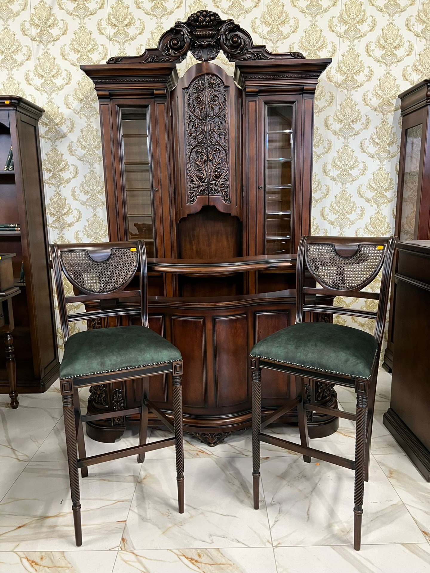 Minunat acest set de bar din lemn masiv complet restaurat in stare impecabilă!