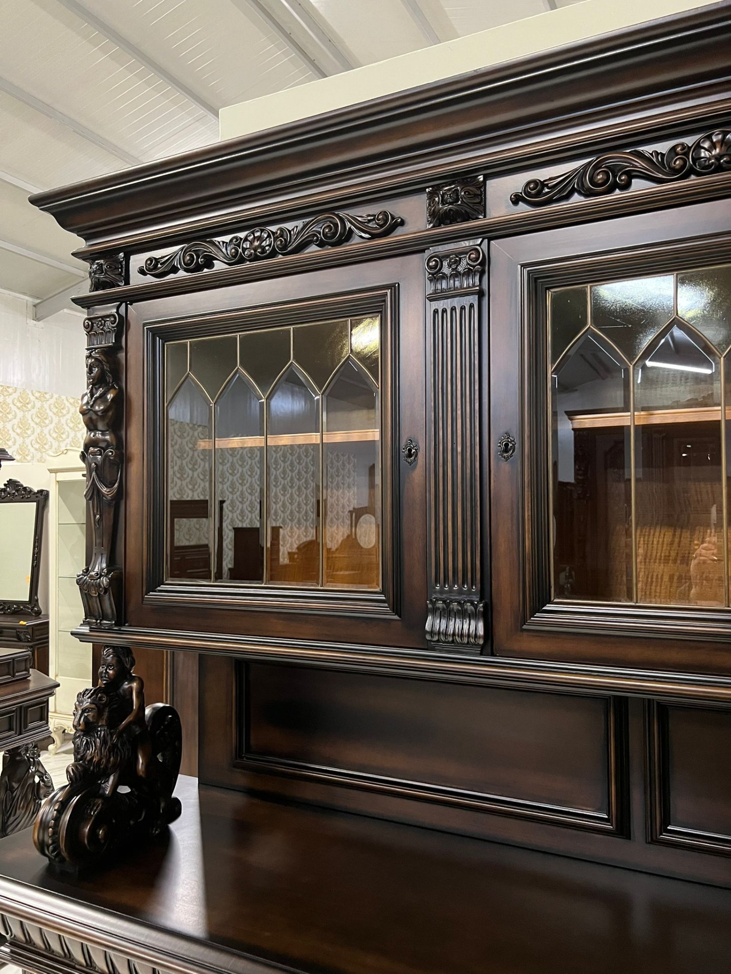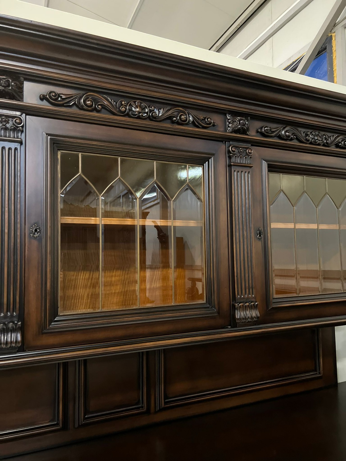 Vitrinele sunt prevăzute cu geam din cristal și vitraliu cu tentă de maro, care completează armonios aspectul nobil al pieselor.